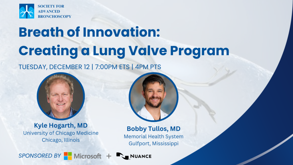 The Society for Advanced Bronchoscopy presents “Breath of Innovation: Creating a Lung Valve Program ” with Drs Kyle Hogarth & Bobby Tullos.