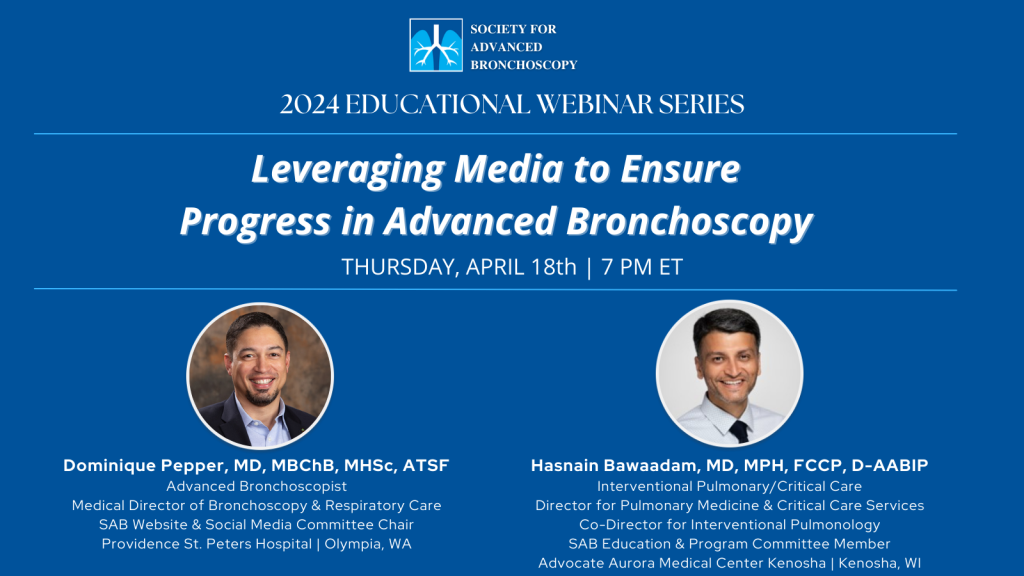 The Society for Advanced Bronchoscopy presents, “Leveraging Media to Ensure Progress in Advanced Bronchoscopy” with SAB Social Media & Website Committee Chair, Dr. Dominique Pepper.