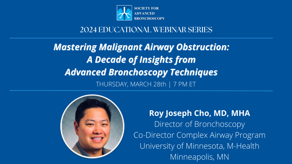 The Society for Advanced Bronchoscopy presents “Mastering Malignant Airway Obstruction: A Decade of Insights from Advanced Bronchoscopy Techniques” with Dr. Roy Joseph Cho.