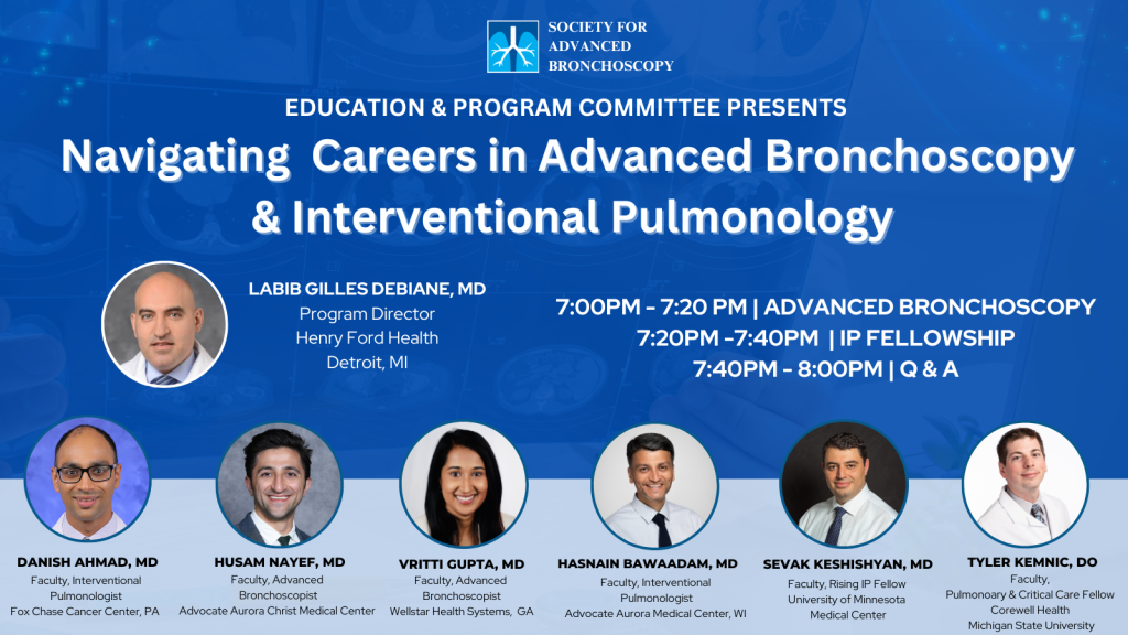 The Society for Advanced Bronchoscopy presents, “Navigating Careers in Advanced Bronchoscopy & Interventional Pulmonology” with the SAB’s Education & Program Committee as well as Dr. Labib Debiane.