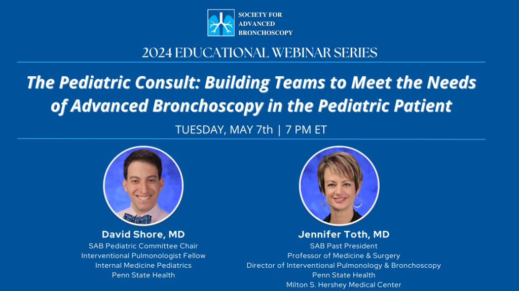 The Society for Advanced Bronchoscopy presents, “Building Teams to Meet the Needs of Advanced Bronchoscopy in the Pediatric Patient” with SAB Pediatric Committee Chair, Dr. David Shore.