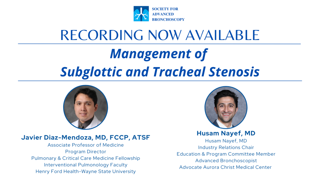 The Society for Advanced Bronchoscopy presents, “Management of Subglottic and Tracheal Stenosis” with SAB Industry Relations Chair, Dr. Husam Nayef & guest speaker, Dr. Javier Diaz-Mendoza