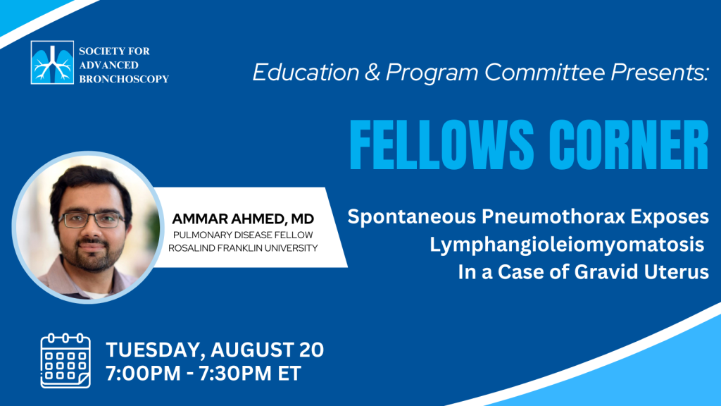 The Society for Advanced Bronchoscopy presents, “Spontaneous Pneumothorax Exposes Lymphangioleiomyomatosis in a Case of Gravid Uterus” with Dr. Ammar Ahmed