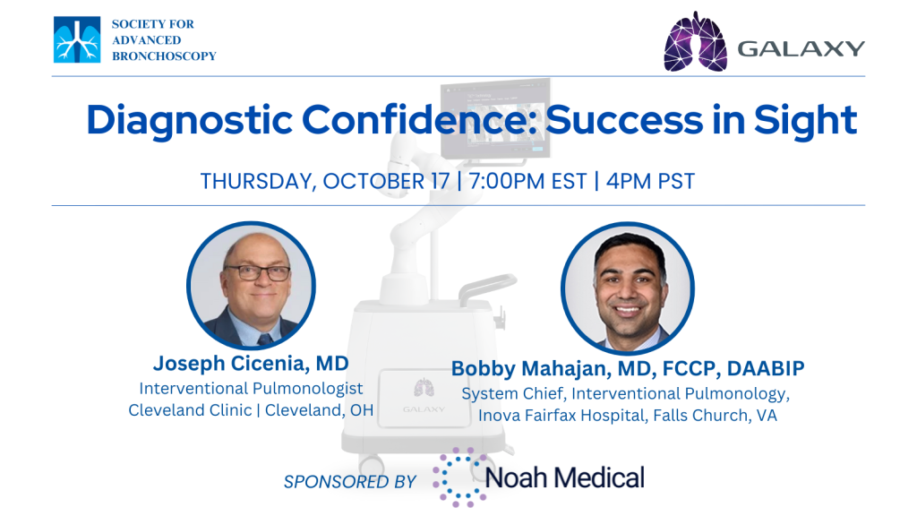 The Society for Advanced Bronchoscopy & Noah Medical present “Diagnostic Confidence: Success in Sight” with Drs Joseph Cicenia & Bobby Mahajan.