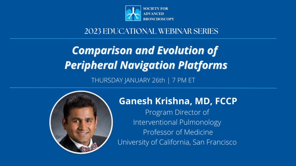 The Society for Advanced Bronchoscopy presents “Comparison and Evolution of Peripheral Navigation Platforms” by Dr. Ganesh Krishna.