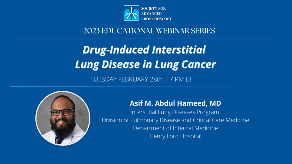 The Society for Advanced Bronchoscopy presents “Drug-Induced Interstitial Lung Disease in Lung Cancer” by Dr. Asif M. Abdul Hameed.