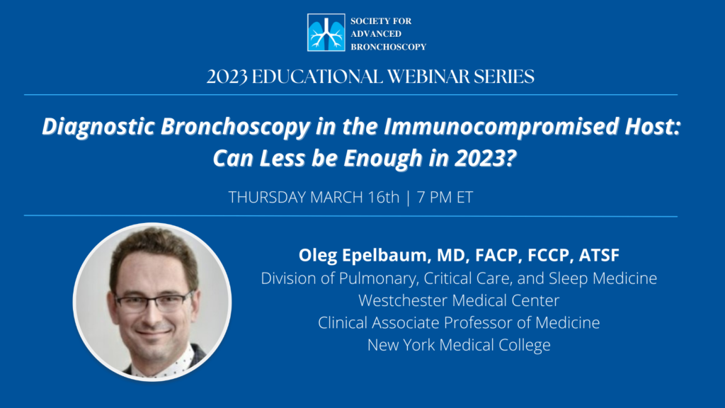 The Society for Advanced Bronchoscopy presents “Diagnostic Bronchoscopy in the Immunocompromised Host: Can Less be Enough in 2023?” by Dr. Oleg Epelbaum.
