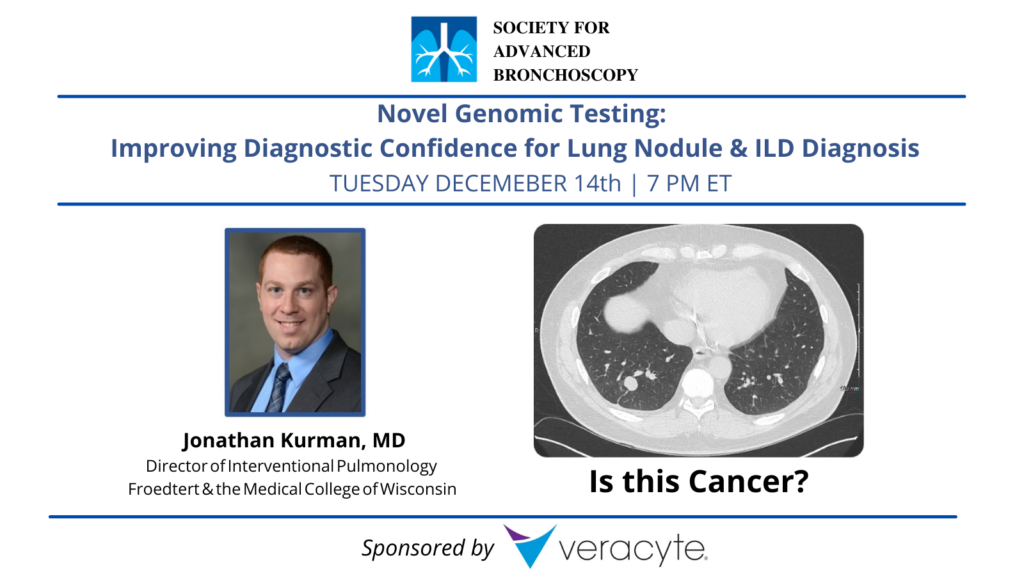 The Society for Advanced Bronchoscopy Presents “Novel Genomic Testing: Improving Diagnostic Confidence for Lung Nodule & ILD Diagnosis” by Dr. Jonathan Kurman.