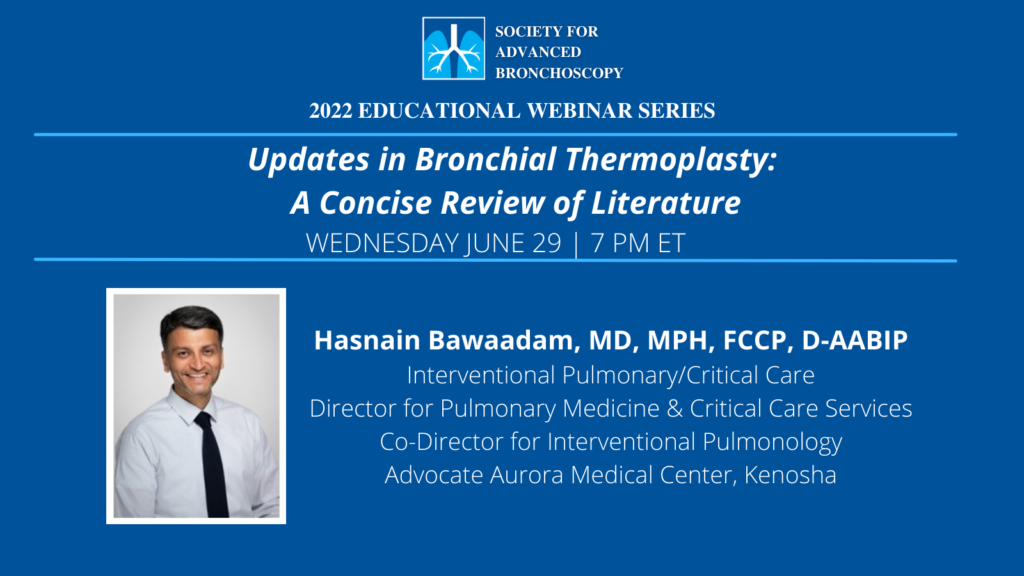 The Society for Advanced Bronchoscopy presents “Updates in Bronchial Thermoplasty: A Concise Review of Literature” by Dr. Hasnain Bawaadam.