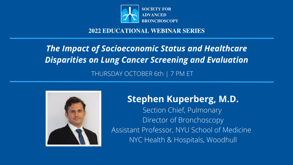 The Society for Advanced Bronchoscopy presents “The Impact of Socioeconomic Status and Healthcare Disparities on Lung Cancer Screening & Evaluation” by Dr. Stephen Kuperberg.