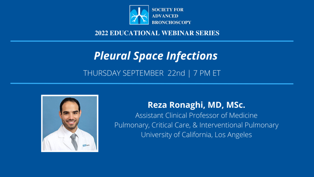 The Society for Advanced Bronchoscopy presents “Pleural Space Infections” by Dr. Reza Ronaghi.