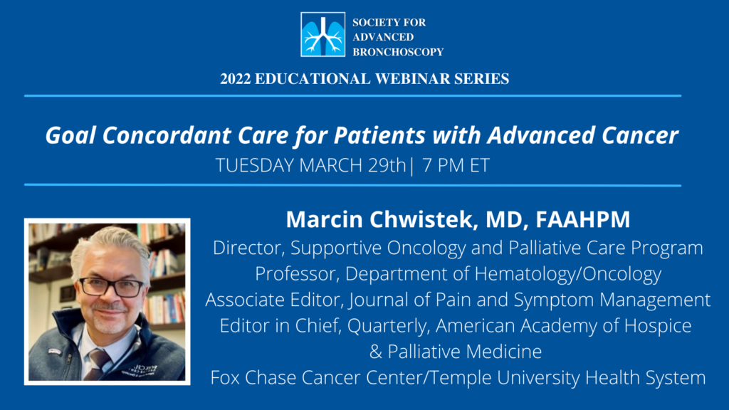 The Society for Advanced Bronchoscopy Presents “Goal Concordant Care for Patients with Advanced Cancer” by Dr. Marcin Chwistek. Endoluminal Robotics & Lung Navigation, Where Do We Go From Here?
