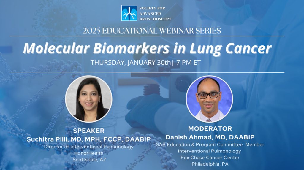 The Society for Advanced Bronchoscopy presents “Molecular Biomarkers in Lung Cancer” with Drs Suchitra Pilli & Danish Ahmad.
