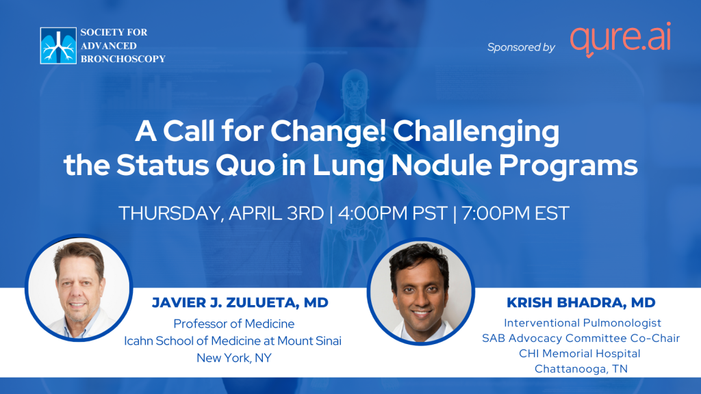 The Society for Advanced Bronchoscopy presents “A Call for Change! Challenging the Status Quo in Lung Nodule Programs” with Drs Javier Zulueta & Krish Bhadra.