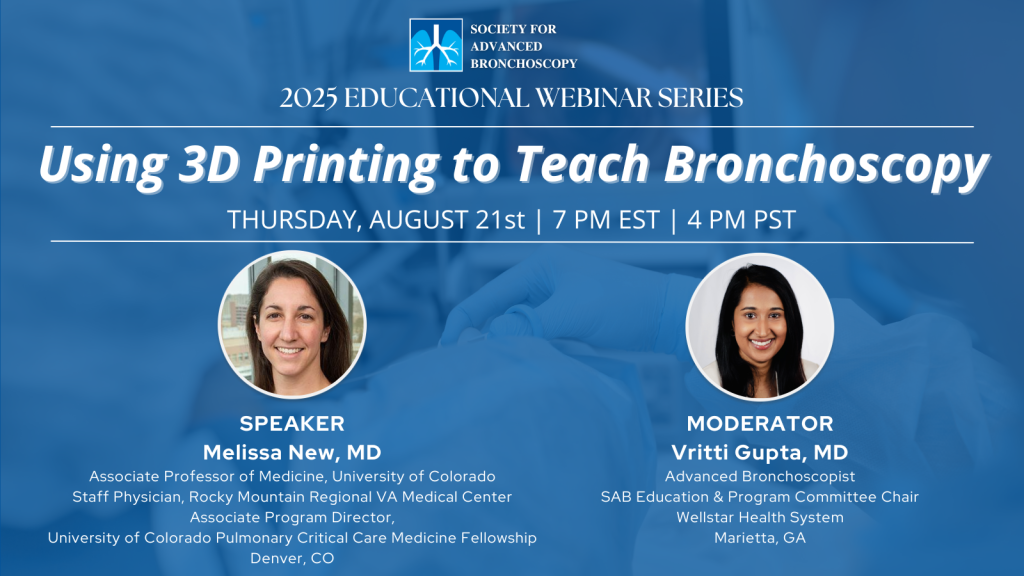 The Society for Advanced Bronchoscopy presents “Using 3D Printing to Teach Bronchoscopy” with Dr. Melissa & Dr. Vritti Gupta