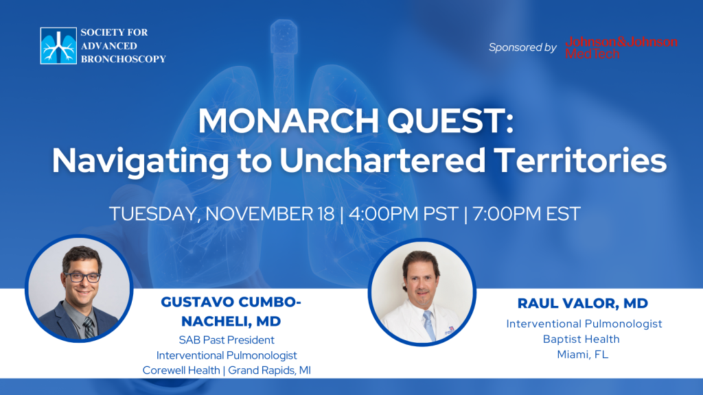 The Society for Advanced Bronchoscopy presents “MONARCH™ QUEST: Navigating to Unchartered Territories."